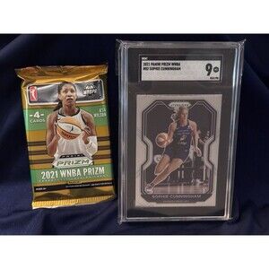 This includes a Sophie Cunningham Graded Mint condition Rookie Card. Graded a Mint 9. A great investment! Also included is a sealed Prizm WNBA trading card pack from 2021 which is Sophies first year on a trading card. The pack contains 4 WNBA trading cards. Who knows, its possible to pull her Rookie card from the pack if you open it (no guarantees of course) We ship FAST, within 24 hours and same day when possible! We ship using USPS Ground Advantage securely using cardboard boxes.