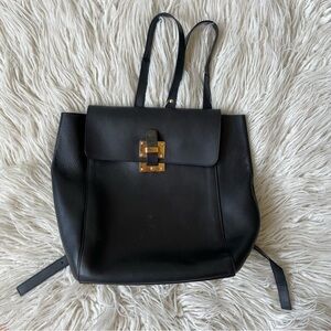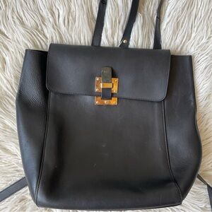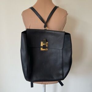 Sophie Hulme Black Leather Single Soft Flap Gold Tone Hardware Backpack