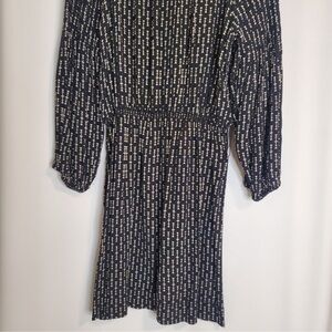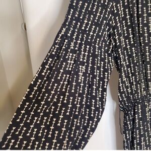 Sophie Max black and cream abstract print dress with beautiful bell like sleeves. Elastic at bottom of sleeves.