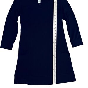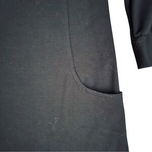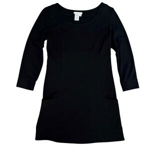 Sophie Max Black dress size xs 2 pockets curved hem making a feminine silhouette pre owned like new condition no rips hole or stains see photos for measurements