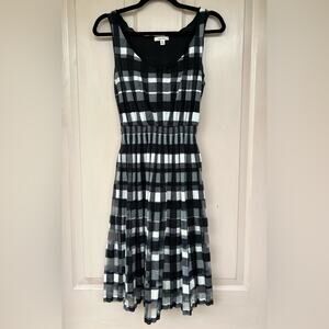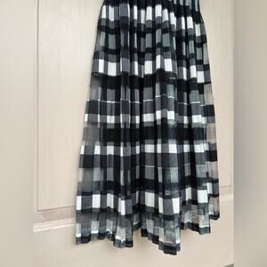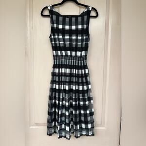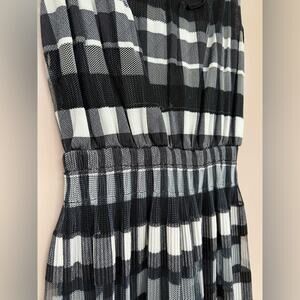 Sophie Max Black & White Plaid Pleated Mesh Dress - Size XS
