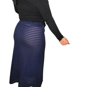 Sophie Max Vanessa Navy Rippled Long Skirt Sz M
