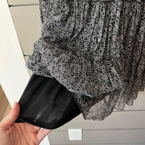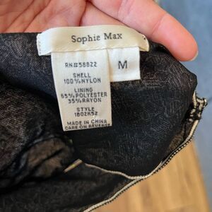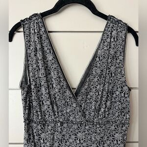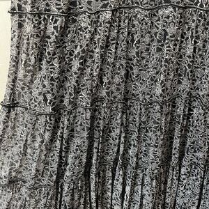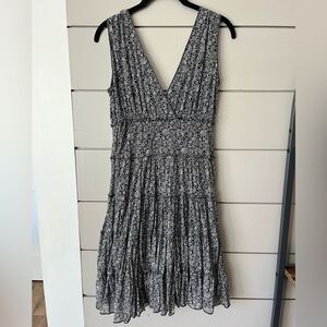 Sophie Max black/white geometric floral print mesh tiered v neck dress sz M EUC