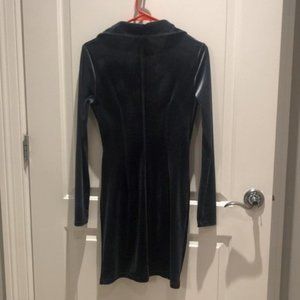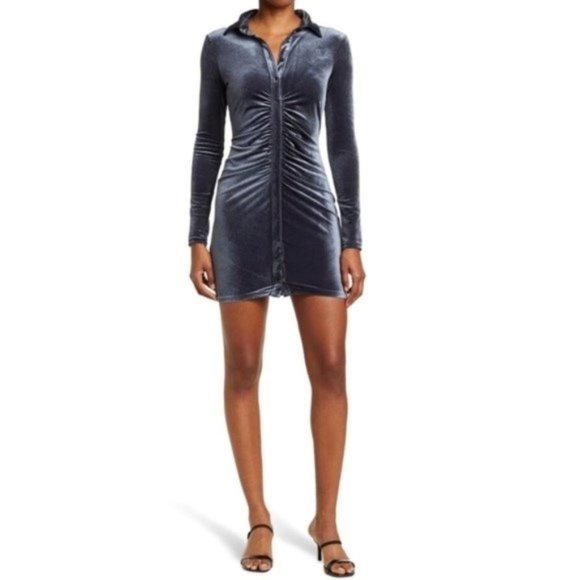 Sophie Rue Collar Button Down Velvet Mini Dress. In excellent preowned condition. Full button down front with ruched bodice, lapel collar and long sleeves.