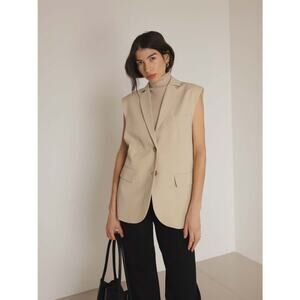 Description: Sophie Rue Corey Blazer Vest in Khaki, size L, NWT. Features 84% polyester, 10% rayon, 6% spandex, sleeveless blazer design, perfect springtime layer, ideal styled with a high neck tank top, thin turtleneck, or worn alone. Smoke-free home, fast shipping, bundle to save!