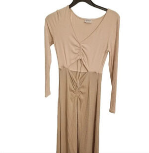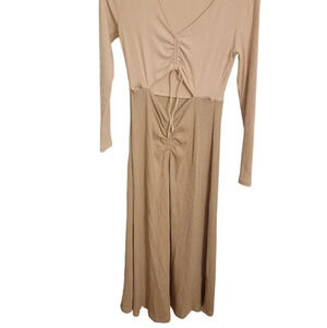 Great condition size large maxi dress. 20 in pit to pit. 49 in long. 25 in sleeves. Rayon and spandex materials.