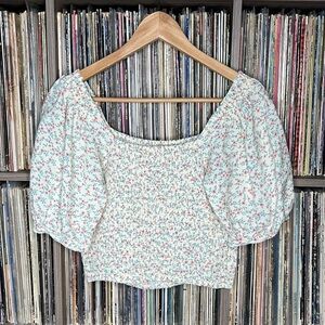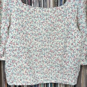 Sophie Rue Floral Puff-Sleeved Smocked Bodice Cropped Top Size Small