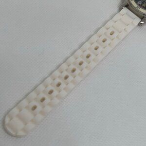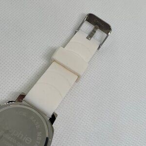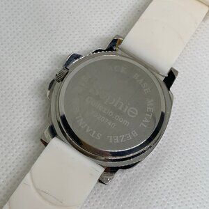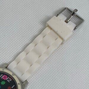 Sophie collezio women watch colorful floral dial 34mm silver tone quartz analog white silicone band size up to 7.5”, in good condition battery installed