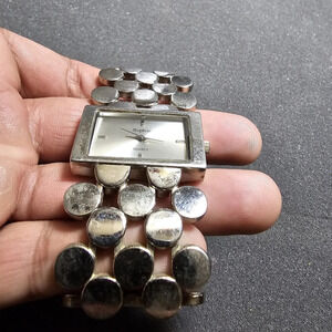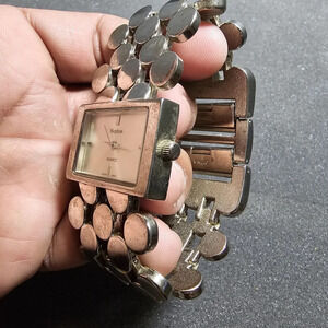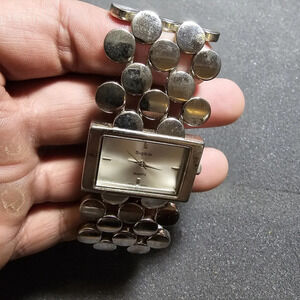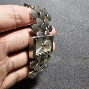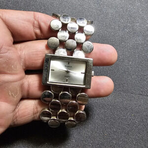 Sophie ladies fashion Quartz watch silver tone working rectangular face shows signs of wear such as scratches on case crystal and bracelet, bracelet also shows signs of tarnishing see pictures for reference