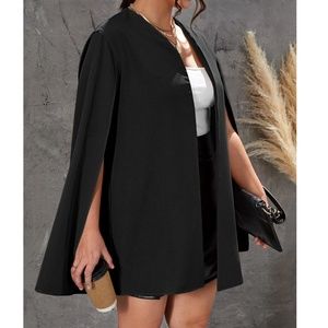 Enhance your wardrobe with this sophisticated black cape blazer. Ideal for both formal and casual settings, it offers a sleek and modern look.
