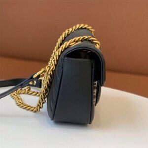 This sophisticated black leather gold chain bag is your go-to for refined style, suitable for both day and evening wear.