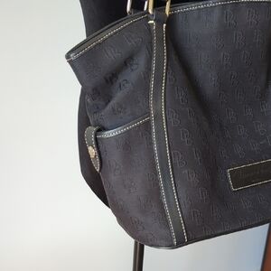 This black tote bag features a sleek, structured design with gold-tone hardware, offering a versatile and professional look. Crafted from smooth leather, it provides ample space for everyday essentials while maintaining a minimalist aesthetic. Its durable construction ensures it is both practical and stylish for any occasion.