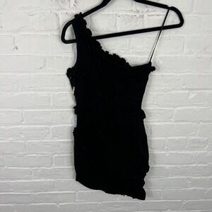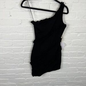 Turn heads with this sophisticated black one-shoulder mini dress. Ideal for any event, it combines elegance with a modern twist.