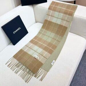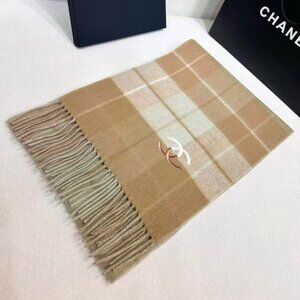 Add a layer of unparalleled sophistication with this Chanel beige plaid wrap. It’s intricate pattern and soft drape are perfect for enhancing any outfit, offering both visual appeal and comforting warmth.