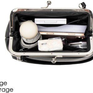 Sophisticated Vegan Leather Kisslock Clutch Purse for Stylish Women - 10.6” Size
