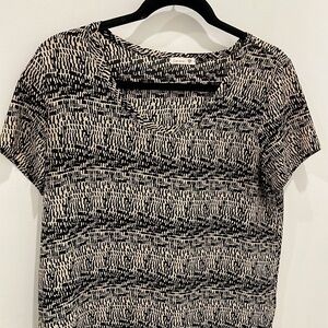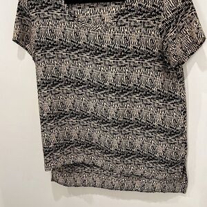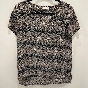 Soprano Black and Tan Patterned Short Sleeve Blouse