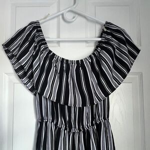 Soprano Black and white striped midi dress with ruffle hem and flowy sleeves