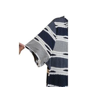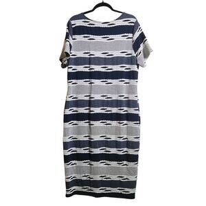 Soprano Blue White Striped Short Sleeve Shift Dress Midi Plus Sz 3X Sexy Stretch