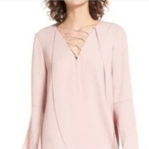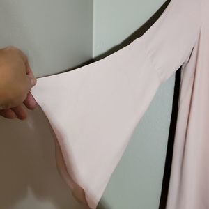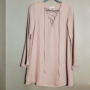 Soprano beautiful boho style flowy v-neck dress with bell sleeves, body of dresses lined. The bell sleeves add to the breezy feel of the simple silhouette. Easily goes from day to night.