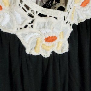 Such a great festival tank top with a fantastic crochet pattern and floral embroidery.