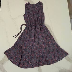 Soprano Dusty Gray Floral Wrap Dress Womens XS Sleeveless TieFront Ruffle Bottom