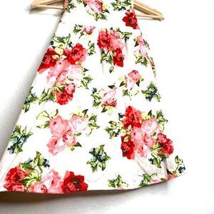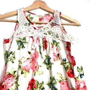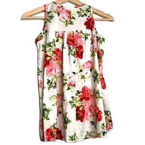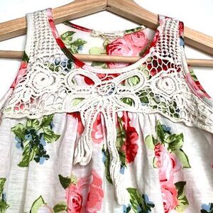 Soprano Girls Blouse White Red Floral Sleeveless Scoop Neck Stretch Lace XL (16)
