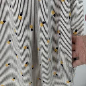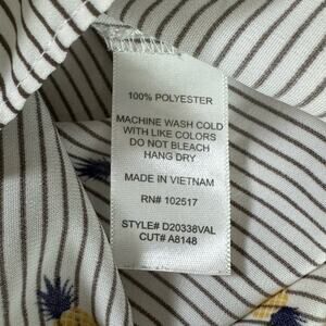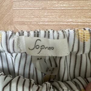 Soprano gray, yellow, and blue striped off-shoulder mini dress in women's medium. Features a playful pineapple print and a comfortable, summery design perfect for casual outings.