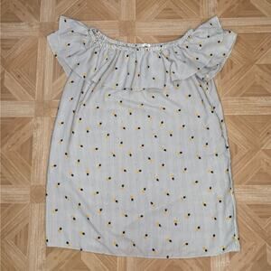 Soprano Gray/Yellow/Blue Pineapple Off Shoulder Mini Dress Womens Medium Striped