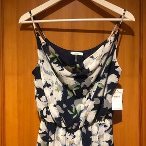 New with tags! Navy blue cowl-scoop-neck with a white floral pattern and a built-in slip. Brand new, never worn. From Nordstrom Rack.