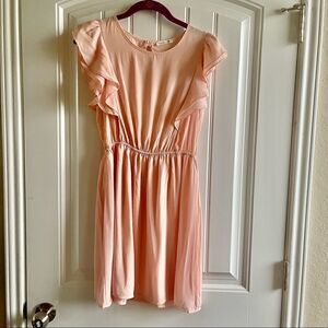 Soprano Peach Ruffle Sleeve Crepe Mini Dress; SZ M; Good Condition (minor mark on bottom of dress as seen in picture 11/not noticeable when wearing)