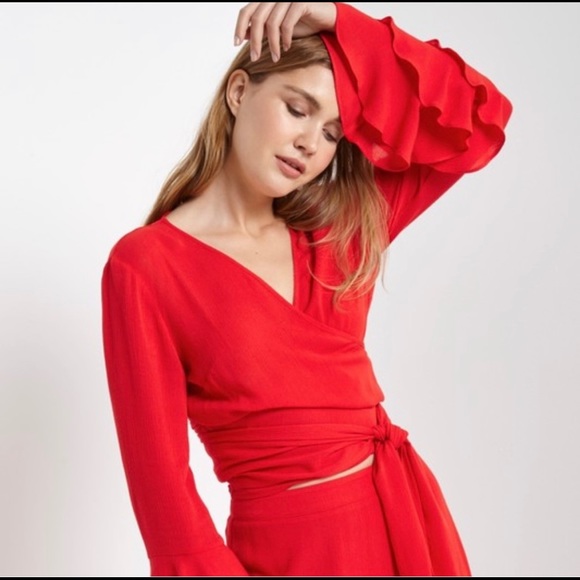 Soprano Red Ruffle Wrap Top