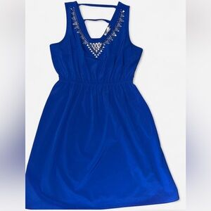 Elegant royal blue dress with striking studded accents. Ideal for chic occasions.