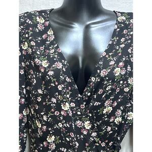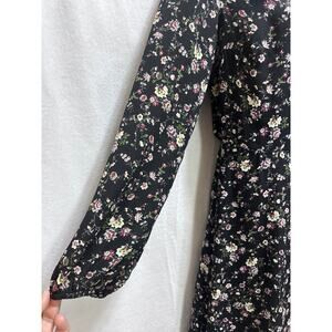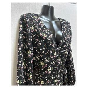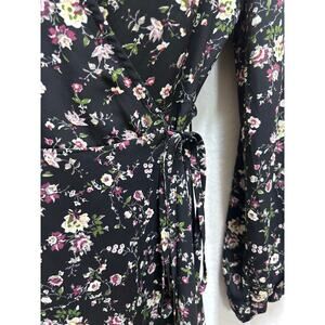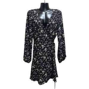Soprano Sheer Wrap Dress L Black Ditsy Floral Knee Length Long Sleeve Coquette Romantic Feminine Boho Fairy.