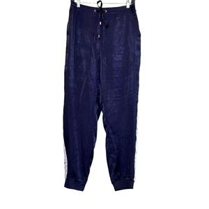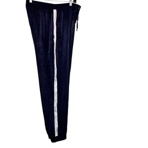 Soprano Silky Joggers Elastic Waist Navy With White Tuxedo Stripe Size Large
