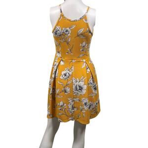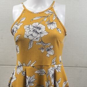 Soprano Women's Sundress - Size Medium - Yellow Floral High Neck Sleeveless Fit & Flare Dress