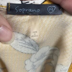 Add a splash of sunshine to your wardrobe with this Soprano women’s sundress in size medium, featuring a bright yellow background with white floral print. Designed with a high neckline and sleeveless cut, this dress offers a chic and breezy silhouette perfect for spring and summer outings.