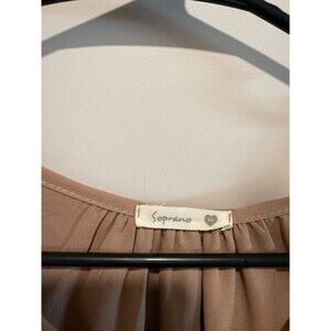 The Soprano Tan Blouse in size M is a stylish and versatile piece perfect for various occasions such as travel, parties, formal events, and business meetings. The blouse features a floral pattern, long sleeves, and a pullover closure for easy wear. Made of lace fabric with black accents, it exudes a bohemian, college, city, and classic theme, making it a standout piece for the winter, fall, and spring seasons. The brand Soprano ensures quality and style in this fashionable blouse.37