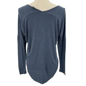 Soprano Women's Blue Striped V-Neck Top Size S/M - Relaxed Fit Layering