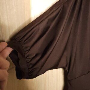 Soprano women’s brown short sleeve stretchy fit and flare midi dress accordion skirt small. Gently used condition. Measurements are: 36 ½" from shoulder to hem, and approximately 17" from armpit to armpit.