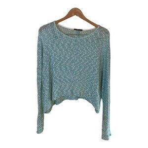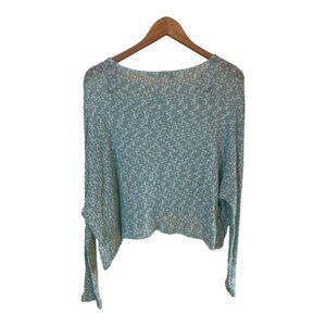 Soprano Womens Cropped Top Knit Large Turquoise White Long Sleeve Cottagecore