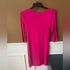 Vibrant hot pink dress by Soprano. Features a sleek design with three-quarter sleeves. Perfect for any occasion.