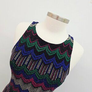 Soprano Womens M Metallic Bodycon Mini Dress Multicolor Zigzag Lined Disco Rave Festival
