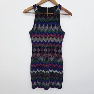 Soprano Womens M Metallic Bodycon Mini Dress Multicolor Zigzag Lined Disco Rave