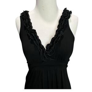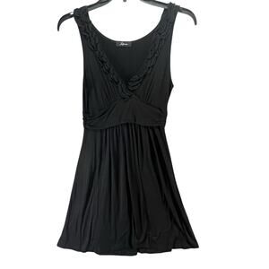 Soprano Y2K Dress Womens Size M Black Sleeveless Ruffled Neck Fit Flare Soft Flowy