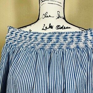 Pre-loved, Soprano blue striped top off the shoulder long sleeve blouse size M -relax fit Size: M Color: Blue/White Material: 100% cotton Lay flat measurements: approximately 18.5” length approximately 17" chest [pit to pit] approximately 17” sleeves -smoke free home, offers welcome. Likes for price drops ! D-559 -no holes, no stain, -ship the same day or next day/ professional seller All measurements are approximate and done as flat lays. To ensure a good fit, it is recommended you compare these measurements with a well fitting similar garment that you own. Color variations in garment due to lighting when photographed. cootoagecore,boho, summer,hippie