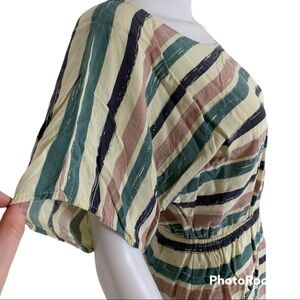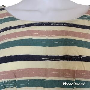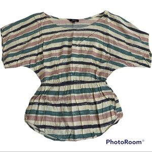 Soprano striped top scoop neck 3/4 balloon sleeve M