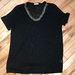 Black knit top with gold stitching. Short sleeves. Good condition smoke-free home