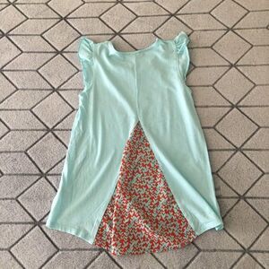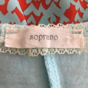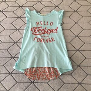 Light blue with red print girls shirt shorter on front longer on the back by soprano. Size 14 Large. Good condition
