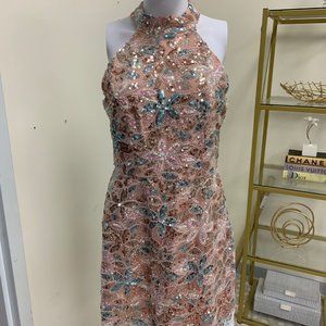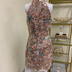 Soraia Sequin Halter Mini Dress- Champagne By Adelyn Rae