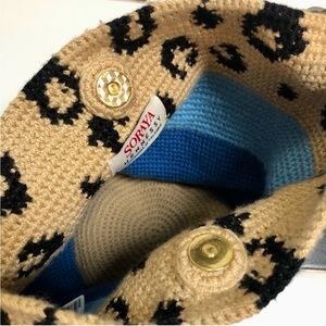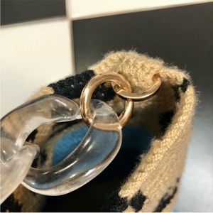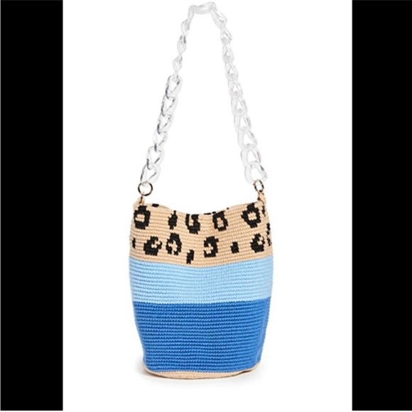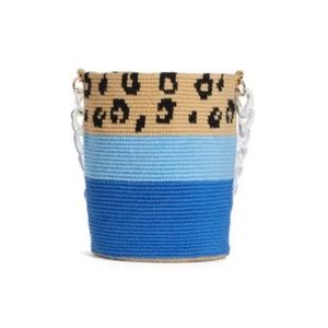 Soraya Hennessy Bucket Bag Colorblock Tote Tan Blue Leopard Print Lucite Strap